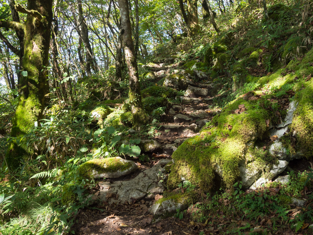 最初キャンプ場を抜けるところはウッドチップが敷かれた歩きやすい道ですが、すぐに普通の登山道になります。少々急な上りもありますが、よく整備されているので歩きやすいです。
