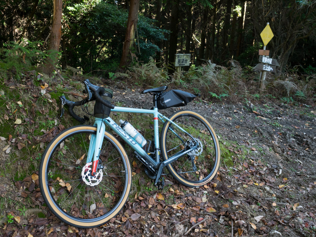 三上山から山城町への下りはさらに勾配がきつく、落ち葉や落石があって荒れています。全く気を抜けません。これはグラベルバイクでないと厳しいですね。でもいい感じの道ではあります。林道神童子線というみたいです。