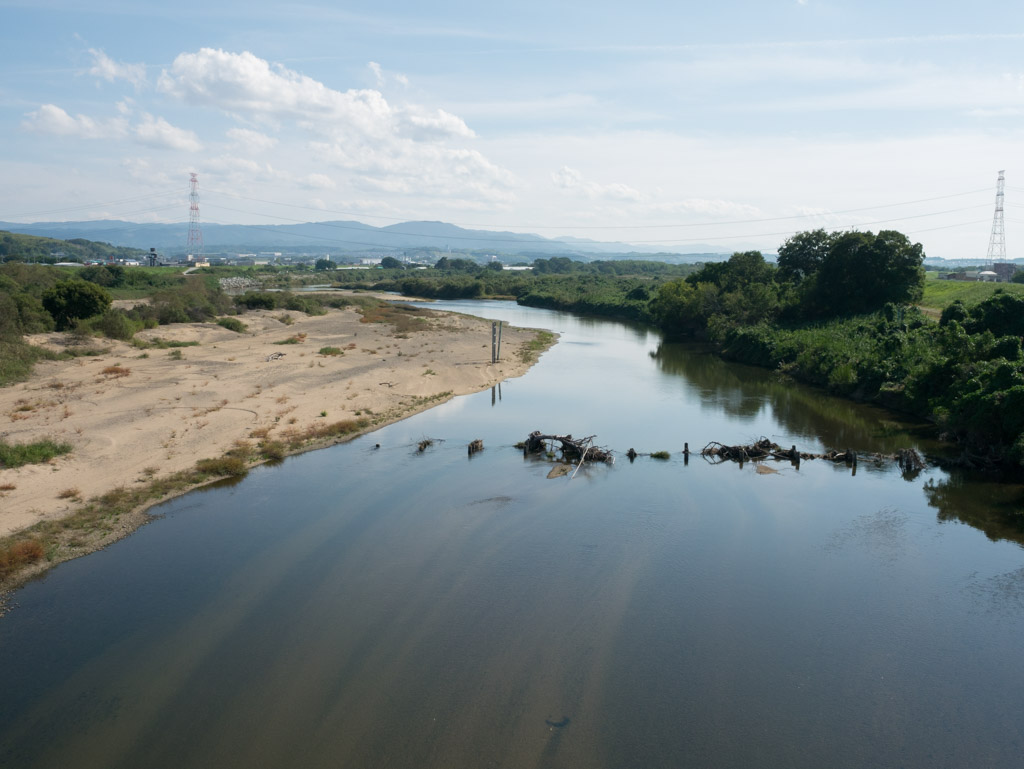 府道70号を横切ってさらに鳴子川沿いにまっすぐ行くと自動的に開橋の前に出てきます。わかりやすい。開橋を渡って対岸の自転車道を走ります。