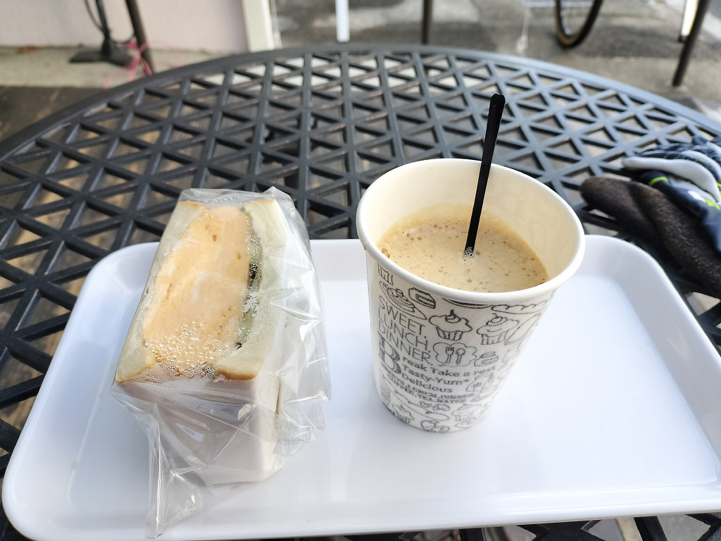 寒くなってきたのでちょっと遅めに出発します。まずは青谷のローズマリーに立ち寄り。しばらく休んではったので今月になって初めてでした。10時と中途半端な時間ですが、朝食兼昼食です(笑)。今日はタマゴサンドを頂きました。まだ一巡してないな(笑)。