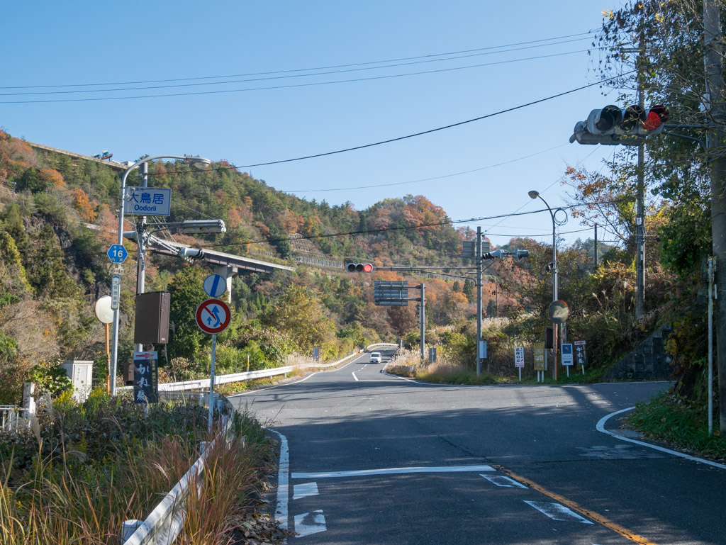 県道108号から大戸川沿いに県道16号に入ります。直進して旧道に入ろうと思ってたら通行止めだったので、右折して新道に入ります。