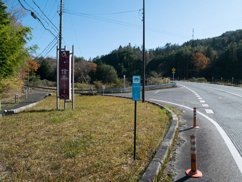 1.5kmほど新道を走った後、この場所を左に入って旧道へ進みます。