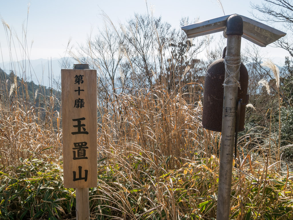 難しい字ですが、靡は「なびき」と読みます。大峯奥駈道の上に75ヶ所設けられた霊場の一つです。その横には鐘。13年前の写真と見比べると、こんなのはなかったなぁ。