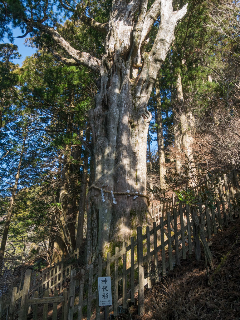本殿の近くにある神代杉と呼ばれる御神木。
