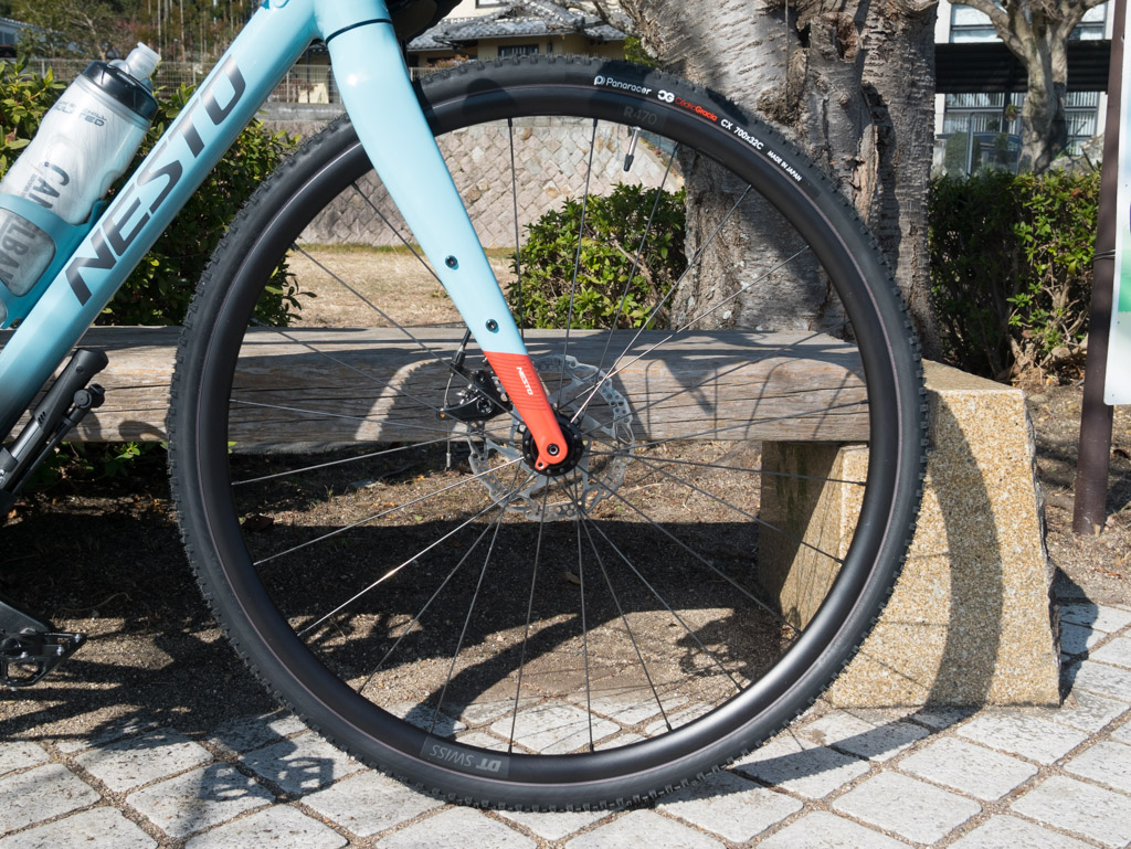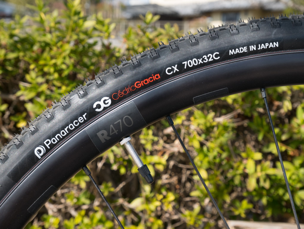 そこで前から目を付けていたのがパナレーサーのCG CXというタイヤです。あまり聞き馴染みがないかもしれませんが、カテゴリー的にはグラベルではなくシクロクロス用のタイヤなのです。シクロクロスの規定でタイヤ幅は33mm以下でなければならないという制限があるため、幅は32Cだけ、カラーもブラック1色しかありません。その代わり、チューブレスとクリンチャーの2種類が発売されています。この太さのブロックタイヤでクリンチャー専用というのは貴重な存在ですね。