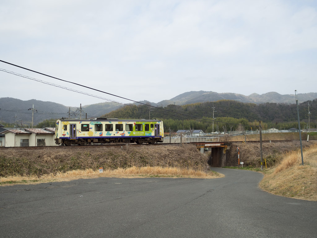 関西本線の手前を右折。ちょうど1両編成の気動車が来たので撮り鉄。