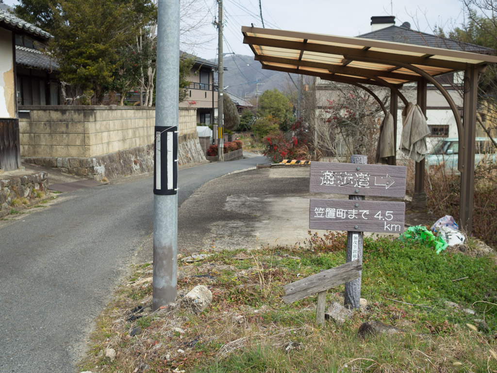 山田地区の真ん中あたりにある道標。ここを右折します。4.5kmということはちょうど中間点あたりですね。