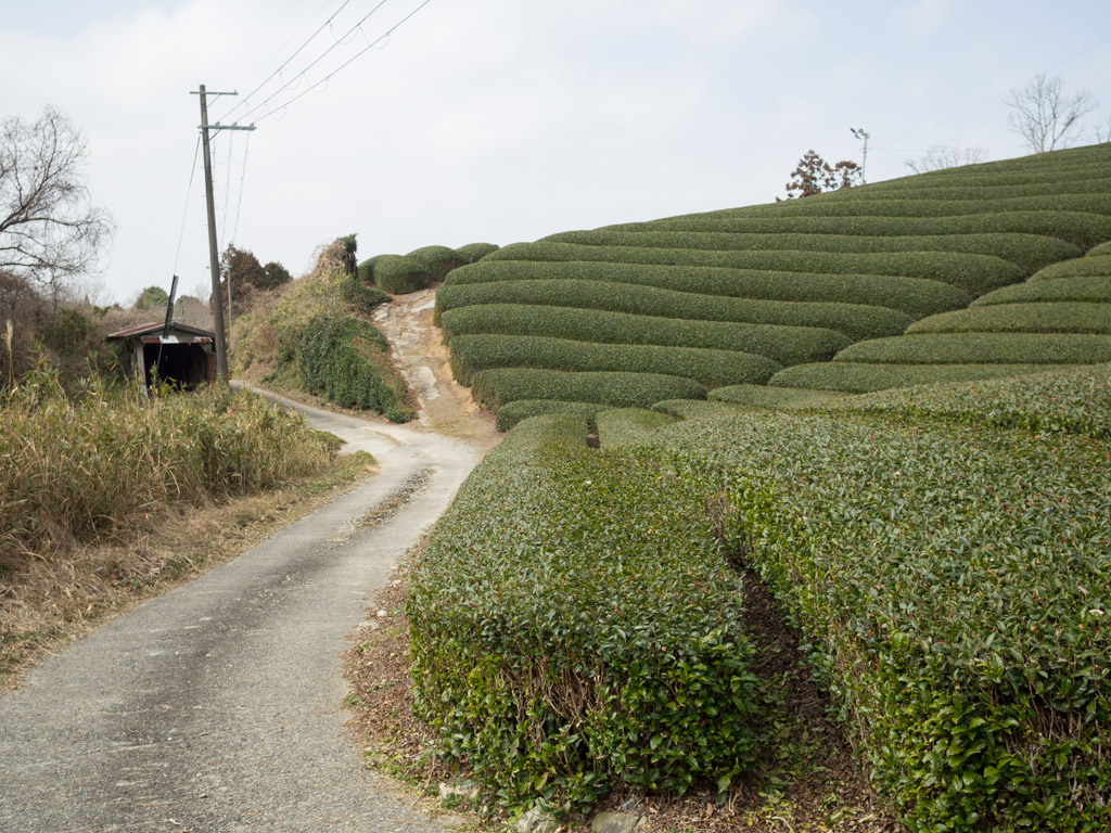 山田の茶畑の真ん中を通っていきます。この辺が全コース中のハイライトでしょうね。
