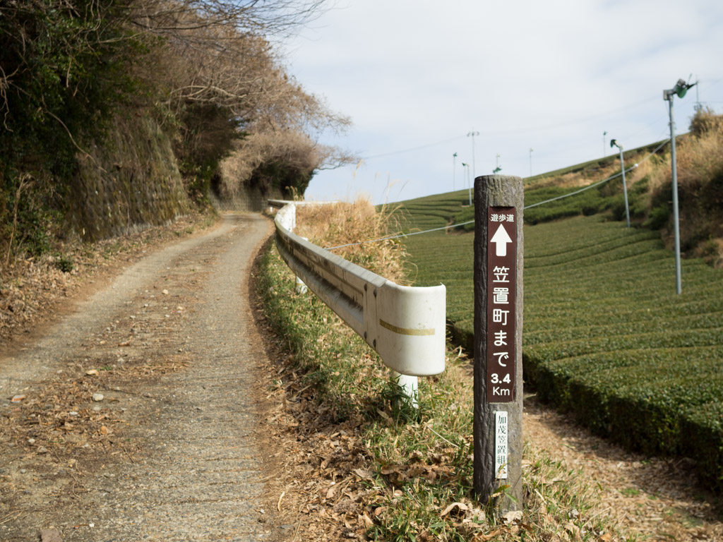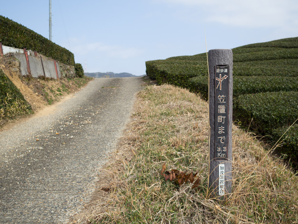 茶畑の端あたりにあるこの道標、ちょっと見落としやすい。ここを右に曲がるとさらに強烈な登りで雑木林の中へ入っていきます。