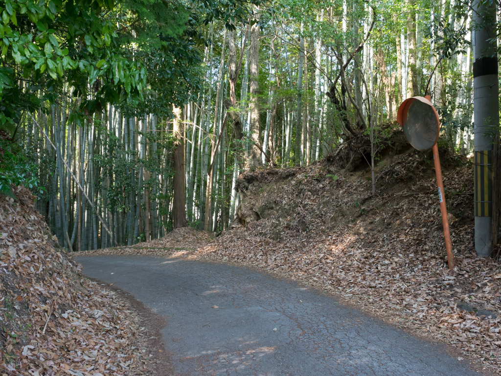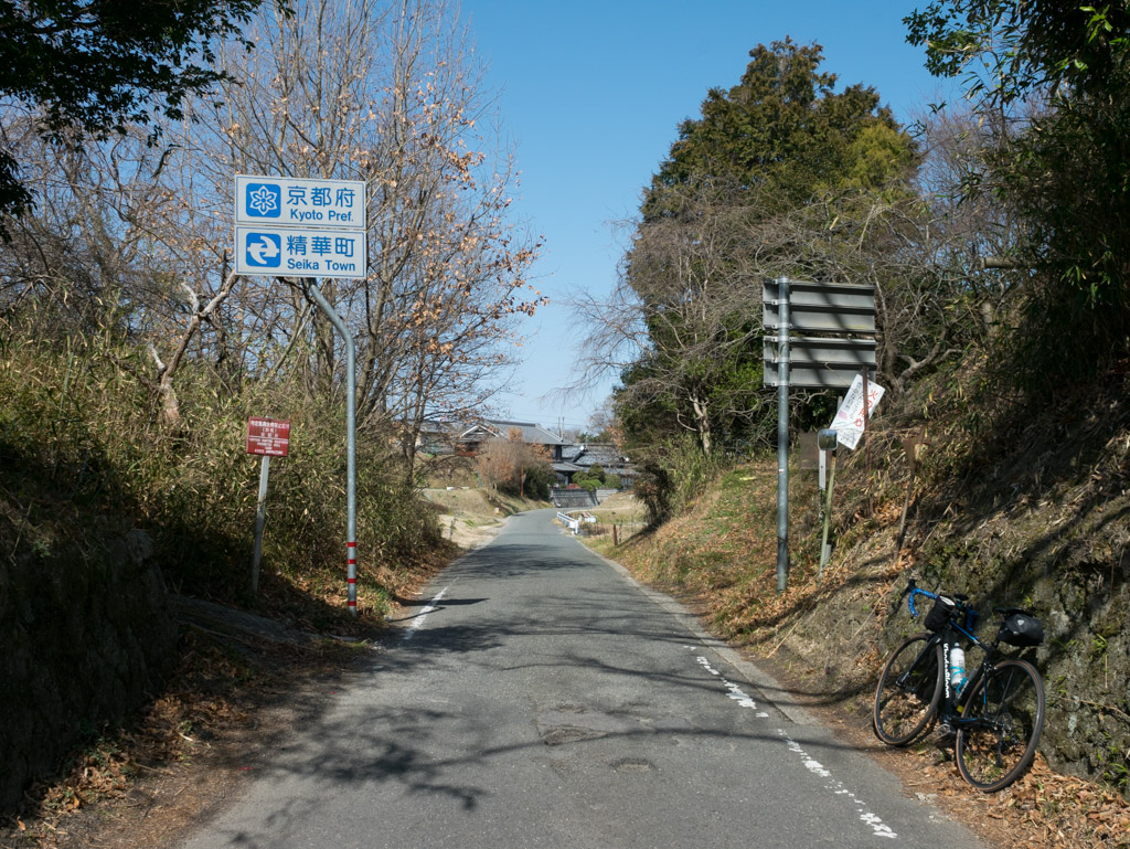 京奈和自動車道の下をくぐってすぐ、府道65号から右の旧道に入って普賢寺小学校を過ぎたところの交差点を右折します。「京都やましろ茶いくるライン」の標識が目印です。この道がツアー・オブ・ジャパンのコースになってるみたいですね。
