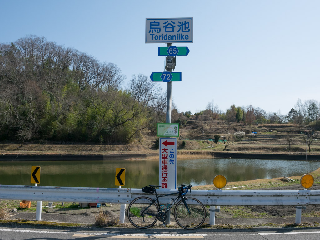 最近スッキリしない天気が続きますが、今日だけは完全に晴れそうなのでちょっとライドへ。そろそろ月ヶ瀬の梅も見頃みたいですが、日曜はダメなので違うところへ。先週は宇治と加茂へ行ったので、今週は精華方面でも行くかということでくろんど池を目指して行ってきました。