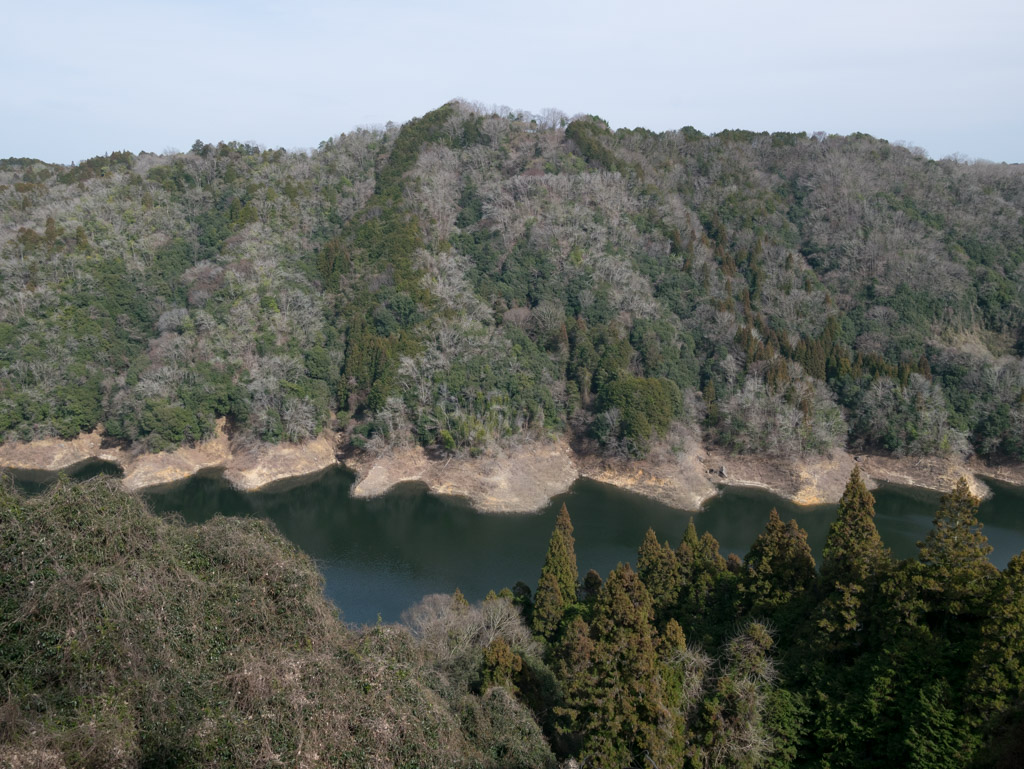 梅林を過ぎて再び標高差100mを登ります。すでに南山城村に入って高尾のピークあたり。ダム湖も渇水が酷いですな。