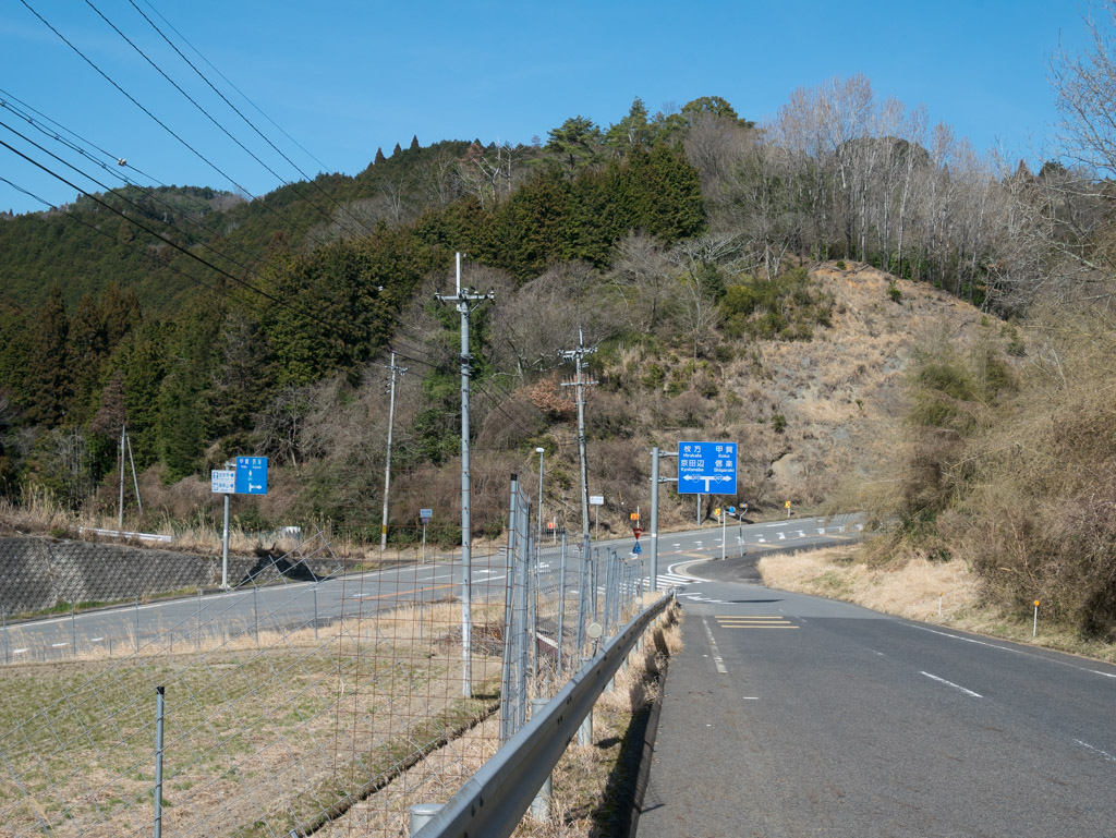 峠を越えてすぐのところに唯一の府道標識がありました。奥山田射場線というようです。