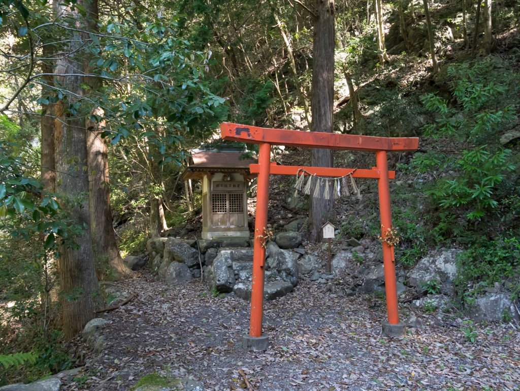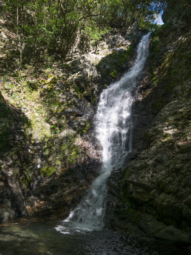 そこからちょっと斜面を歩いて降りていくと、朝日不動の滝が姿を現しました。これは想像以上に立派な滝で見応えがありました。余力があれば立ち寄りをおすすめします。