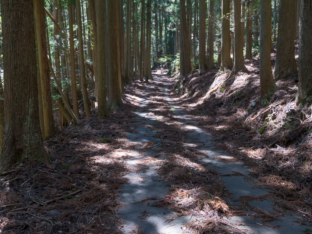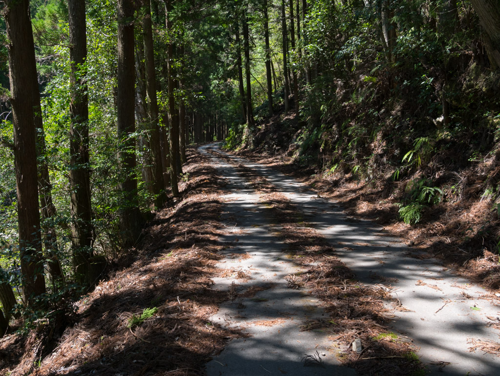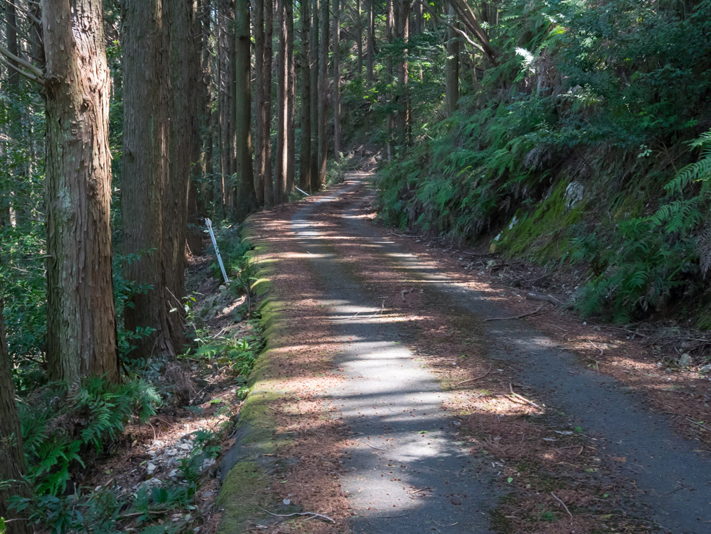 注連小路林道は完全舗装ですが、相当路面が荒れているので走りづらい。特に上の方は10%を超える急勾配で気が抜けません。