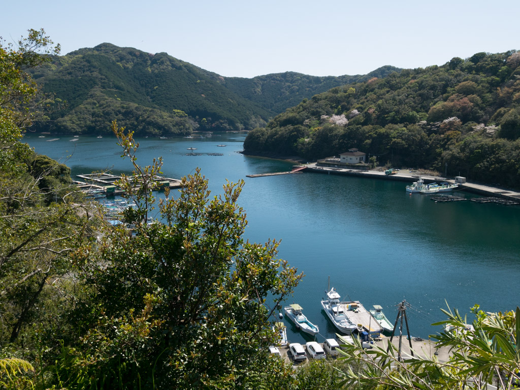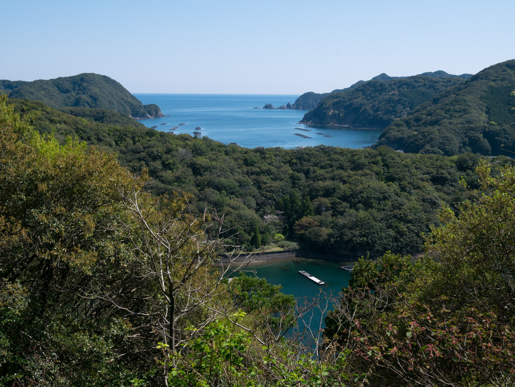 いきなり15%くらいの激坂が続いて、来たことをちょっと後悔しましたが、方座浦の湾を見下ろす絶景に報われました。