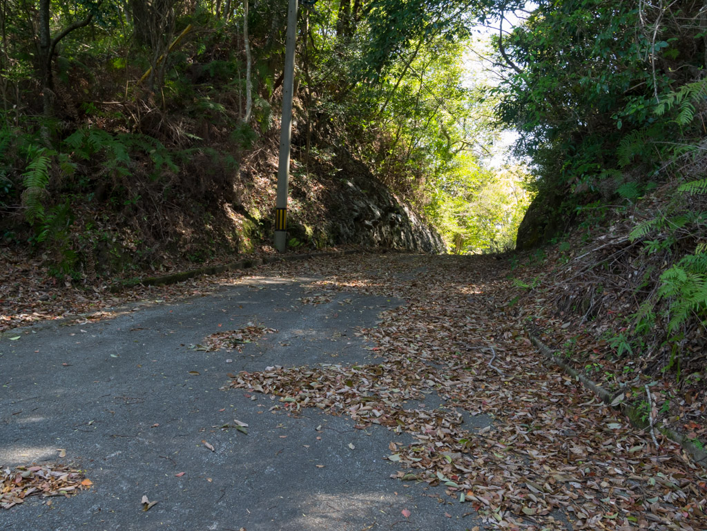 そしてここが峠。12%勾配がずっと続きましたけど、だんだん感覚が麻痺してきました(笑)。この峠を越えると急に道が悪くなって落ち葉だらけ。葉っぱに埋もれた落石を踏まないように細心の注意を払います。