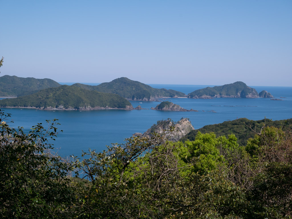 さらに登ると細長い方座浦の岬が見えました。こういうのいいよなぁ。