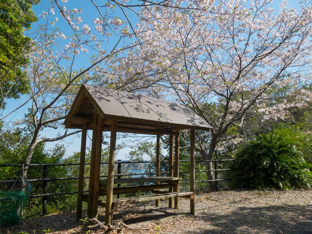 この道は一応ハイキングコースになっているらしくて、こういう休憩所も作られているんですけど、木が茂って展望は全然だめですな。