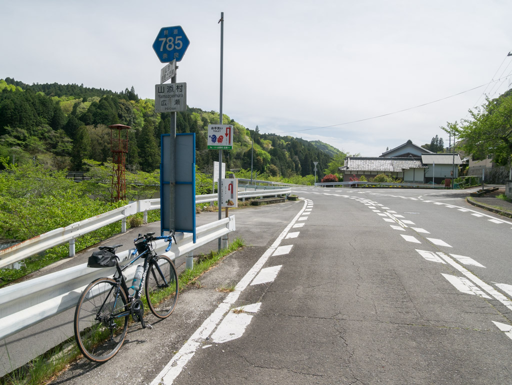 県道785号はほとんど交通量がなく、道は荒れています。小刻みなアップダウンはありますが、概ね平坦に近い感じです。