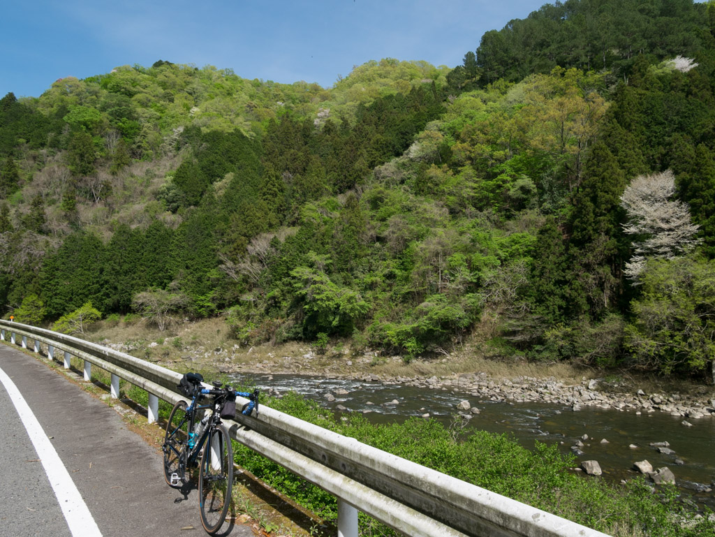 県道80号に合流して、名張川沿いに下っていきます。新緑が鮮やかで気持ちいい。